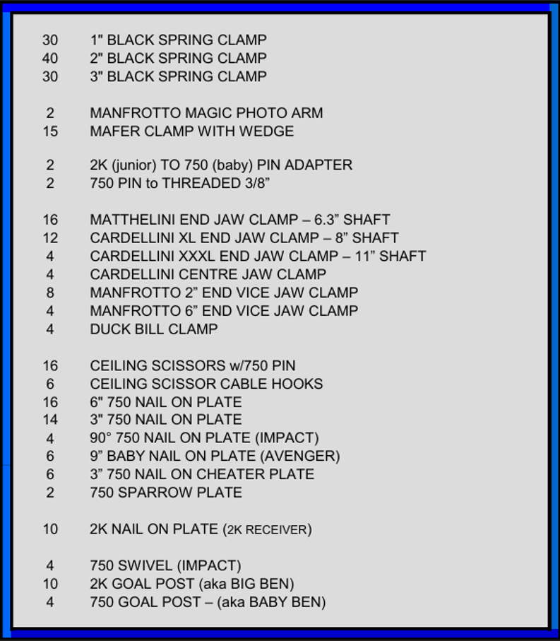 LIGHTING AND GRIP HARDWARE